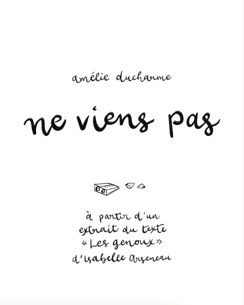 « Ne viens pas » (adaptation BD du texte « Les genoux » d’Isabelle Arseneau), Revue Vestibulle, no. 70, Montréal, mai 2025