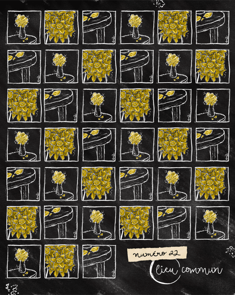 illustration de couvertures et création de publications Instagram pour la parution du 22e numéro de la revue de création littéraire Lieu commun / Montréal, 2024