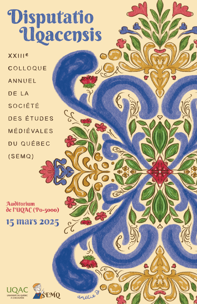 illustration d’une affiche et mise en page d’un programme pour le XXIIIe colloque annuel de la Société des études médiévales du Québec (SEMQ) / Chicoutimi, 2025